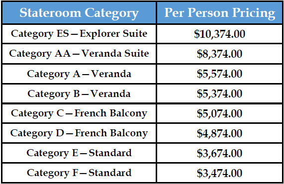 A deposit of $25 per person is due upon reservation. Please refer to your Viking Cruise confirmation for Final Payment deadline.